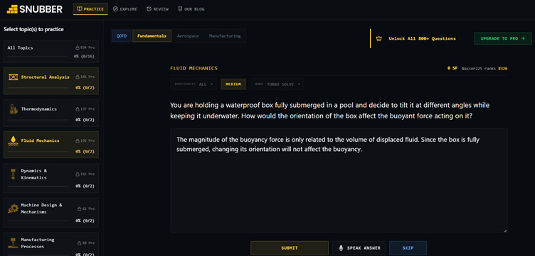 Snubber is a new interactive platform built by a former SpaceX Engineer, designed to help Mechanical, Aerospace and Manufacturing Engineers prepare for technical interviews at the most competitive hardware companies in the world.